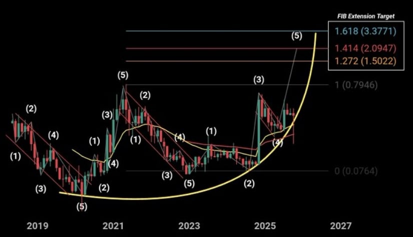 Unser geschätzter Analyst ChartNerd (ah, die Ironie seines Namens!) hat die parabolische Kurve dieser Münze gebührend bemerkt – in der Tat ein strukturelles Wunderwerk! Selbst nach Anfällen und Anläufen bleibt es intakt und weigert sich, den Launen des Schicksals zu erliegen. Das langfristige Wellenmuster, gesichert durch die immer wertvollen EMAs von 20 und 55, flüstert uns zu, dass der Aufwärtstrend trotz der leichtsinnigen, lachenden Rückschläge des Lebens nicht ausgelöscht wurde. Ah, aber können wir es wagen, von Zielen zwischen 1,50 und den ätherischen 3,30 US-Dollar zu träumen? Und der Himmel bewahre die Kühnheit der 8,00-Dollar-Marke – das Reich purer Euphorie, in dem Händler während eines Bullenlaufs wie Verrückte herumtollen! 🐂