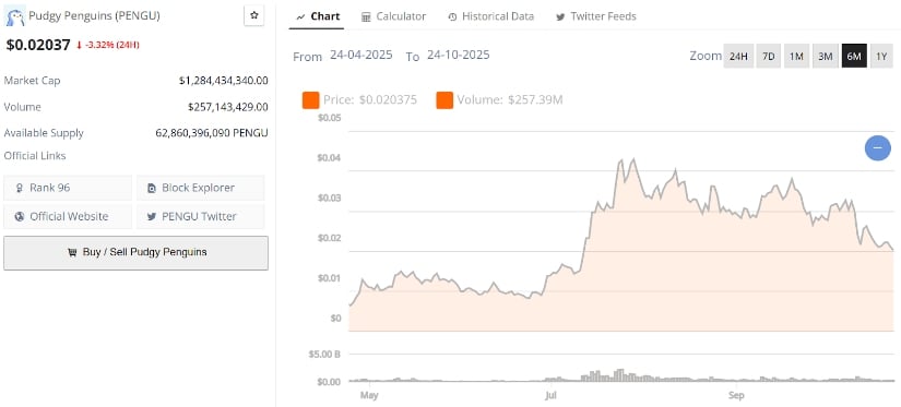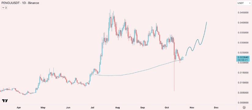Daten von Brave New Coin zeigen, dass PENGU bei 0,0203 US-Dollar gehandelt wird, mit einem Volumen von nahezu 257 Millionen US-Dollar und einer Marktkapitalisierung von über 1,28 Milliarden US-Dollar. Der Widerstand liegt zwischen 0,024 und 0,027 US-Dollar, während die Unterstützung zwischen 0,018 und 0,019 US-Dollar liegt. Ein Ausbruch über 0,027 US-Dollar könnte PENGU auf 0,034 US-Dollar und 0,041 US-Dollar steigen lassen, Bereiche, die so hoch sind wie die Ambitionen einer Gogol-Figur. Wenn es jedoch nicht gelingt, die 0,019-Dollar-Marke zu halten, würde dies zu kurzfristigen erneuten Tests führen, einem so harten Abschwung wie ein russischer Winter. ❄️