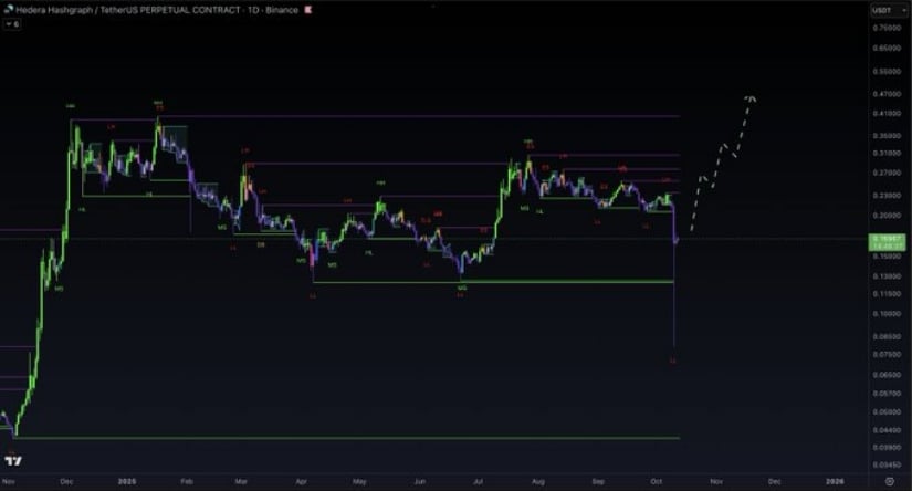 Betreten Sie Trade4ddict, den Analysten mit einem Namen, der wie eine schlechte Angewohnheit klingt. Sie stellten fest, dass HBAR während des jüngsten Markteinbruchs „eine harte Korrektur durchführte“ und Tiefststände nahe 0,125 US-Dollar erreichte, bevor er sich wie ein Superball erholte. 🏀 Der Schlüssel zu einer echten bullischen Umkehr? Ein grüner täglicher Trendbalken und ein höheres Hoch über 0,235 $. Nur dann können wir davon träumen, diese Allzeithochs (ATH) erneut zu erreichen. 🌕