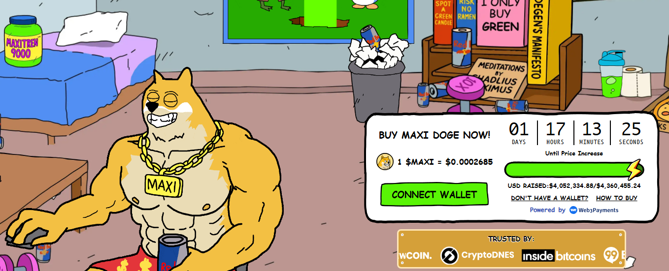- Maxi Doge ($MAXI) ist eine Meme-Münze mit einer Fitness-Besessenheit. Endlich ein Token für diejenigen, die glauben, dass Krypto mehr Proteinshakes und weniger Finanzinfrastruktur braucht. 💪