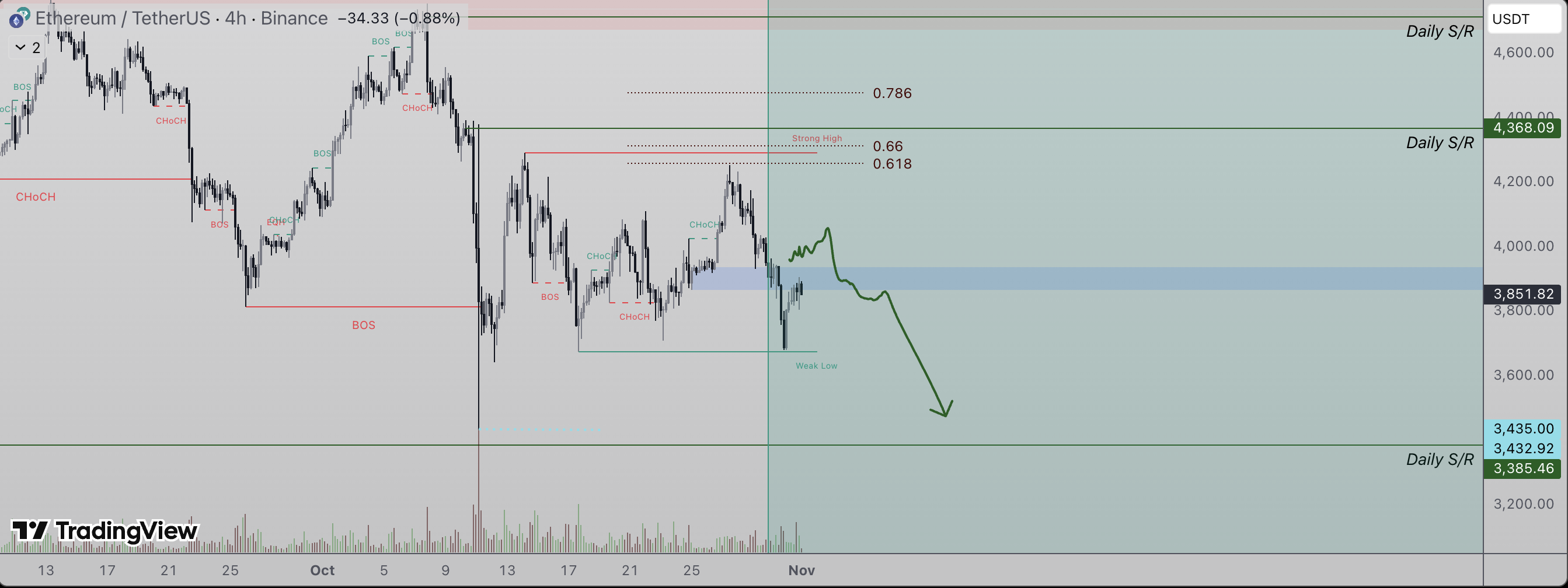 Die Ablehnung des Niveaus von 0,618 – eine Wunde, die zu tieferen Höchstständen auf dem 4-Stunden-Chart führt. Die Geschichte, so der schlaue Erzähler, erzählt uns, dass solche Wunden eitern und mehr Verkäufer zum Fest einladen. Der Alchemist Trader, eine moderne Cassandra, warnt vor rückläufigen Volumina, die wie eine Gewitterwolke anschwellen. Investoren, diese wankelmütigen Götter, haben ihre Bestände ins Leere geworfen und Ethereum dazu gebracht, sich prekär an 3.900 US-Dollar festzuhalten. Ein zögerlicher Griff, ein Flüstern der Hoffnung, aber die Bullen werden müde, ihr Gebrüll reduziert sich auf Wimmern. Wenn 3.900 $ fallen, erwarten Sie 3.385 $, eine letzte Bastion gegen die hereinbrechende Nacht. 🦹♂️🌧️