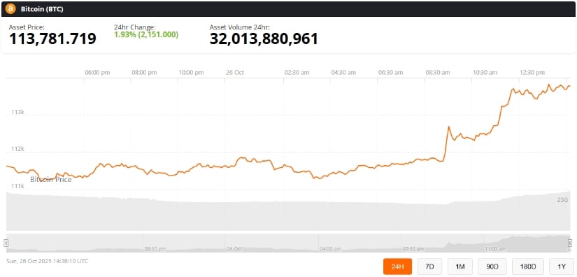 Der jüngste Anstieg der Bitcoin-Preise erfolgt nach Berichten, dass China und die Vereinigten Staaten bei Gesprächen in Malaysia ein Handelsabkommen erzielt haben, das die Zölle auf ausgewählte Waren lockert und die Exportkontrollen für seltene Erden lockert. Während eine vollständige Umsetzung ein Folgegipfel zwischen dem ehemaligen Präsidenten Donald Trump und Präsident Xi Jinping erfordern wird, löste die Ankündigung einen starken Anstieg risikobehafteter Vermögenswerte, einschließlich Bitcoin, aus. 🤯✨