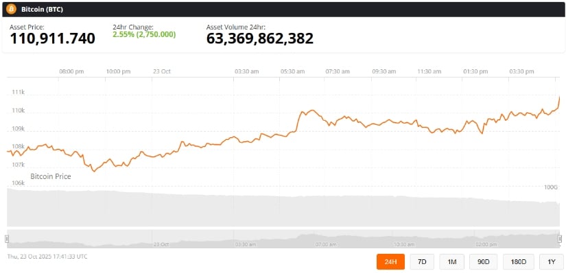 Der Markt, diese anspruchsvollen Wertschiedsrichter, scheint Bitcoin eine kleine Atempause bei etwa 103.000 bis 104.000 US-Dollar zu geben. Gestern, am 24. Oktober 2025, schaffte er einen leichten Aufwärtstrend und erreichte 109.474 US-Dollar, was vermutlich einem Anstieg von 1,8 % entspricht und von denen, die viel kauften und auf höhere Werte hofften, mit großer Freude gefeiert wurde. Dem folgte ein etwas deutlicherer Rückgang um 13 % von diesem schwindelerregenden Höchststand aus, ein Rückgang, der von denen, die bereits mit ihren hypothetischen Gewinnen rechnen, vielleicht unbemerkt blieb. 🙄