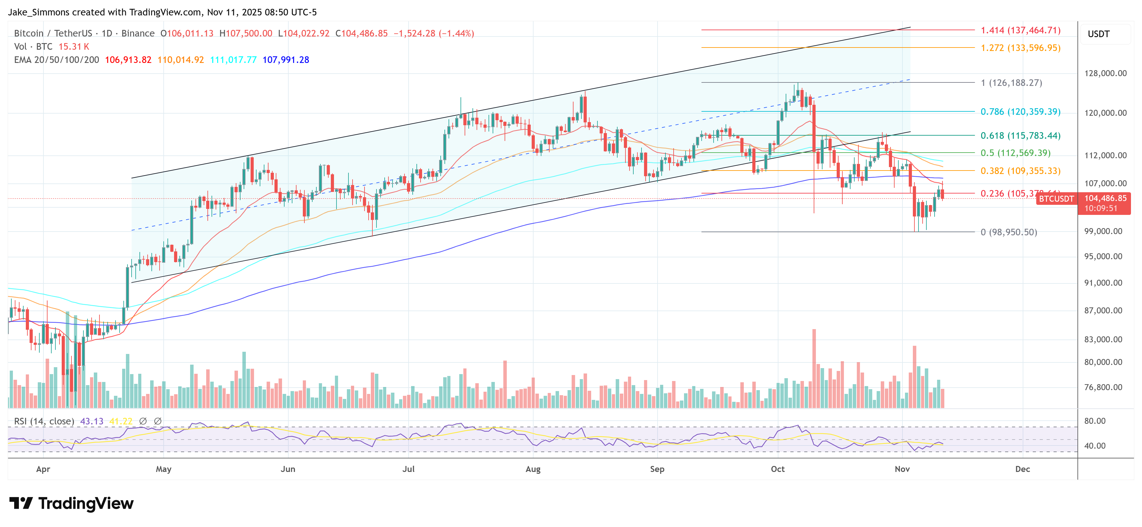 Zum Zeitpunkt der Drucklegung notierte BTC bei 104.486 US-Dollar. Eine Summe, vermute ich, die fĂŒr viele Menschen ĂŒber Erfolg oder Misserfolg entscheiden wird.