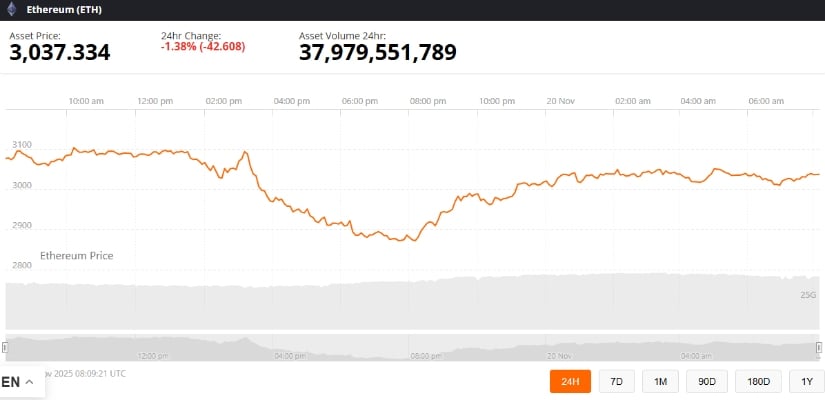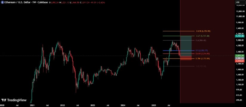 Händler und Investoren beobachten die Preisentwicklung von Ethereum genau, nachdem der Vermögenswert in den letzten 24 Stunden um etwa 1,4 % gefallen ist und derzeit bei etwa 3.024 US-Dollar gehandelt wird. Die Zone von 3.000 bis 3.050 US-Dollar stimmt mit dem Fibonacci Golden Pocket überein, einem technischen Bereich, der zuvor sowohl mit kurzfristigen Korrekturen als auch mit anschließenden Aufwärtstrends zusammenfiel. 🧮🌀