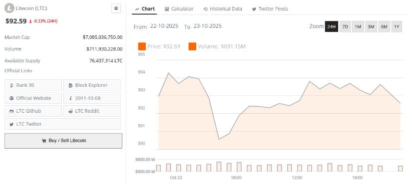 Derzeit bewegt sich der Litecoin-Preis um die 94 US-Dollar – ein Niveau, das viele Händler als strategische Akkumulationszone vor einem bestätigten Ausbruch betrachten. Denn nichts ist so „strategisch“ wie ein Kauf für 94 US-Dollar und die Hoffnung auf ein Wunder. 💔