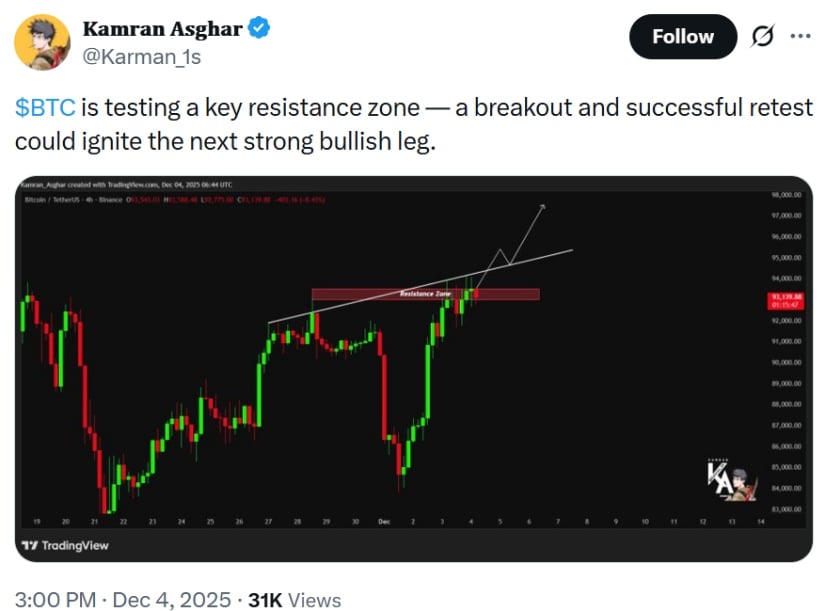 Analyst Kamran Asghar (@Karman_1s) sagt: „Ein Ausbruch hier könnte der Beginn von etwas Großem sein. Aber wenn er scheitert, stehen wir möglicherweise wieder am Anfang.“ 🔄