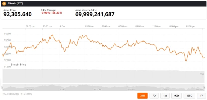 Bitcoin (BTC) macht derzeit das Cha-Cha-Cha-Cha-Cha knapp unterhalb des Widerstandsbandes von 93.000 bis 94.000 US-Dollar, einem Niveau, das so hartnäckig ist wie ein Maultier in einer Schlammgrube. Laut Brave New Coin liegt der Preis von BTC bei 92.305 US-Dollar, was einem Rückgang von 0,06 % innerhalb von 24 Stunden entspricht. Sprechen Sie über eine glanzlose Leistung! 🚀