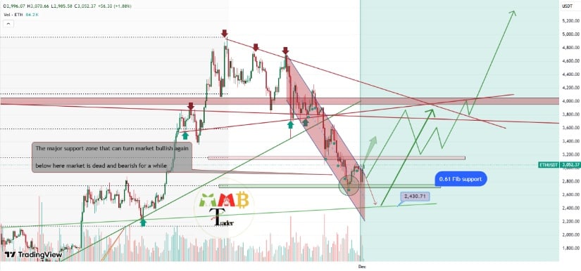 • Ein anhaltender Durchbruch über 3.100 US-Dollar könnte 5.000 US-Dollar beschwören – aber nur, wenn das Volumen in die gleiche Richtung tanzt.
