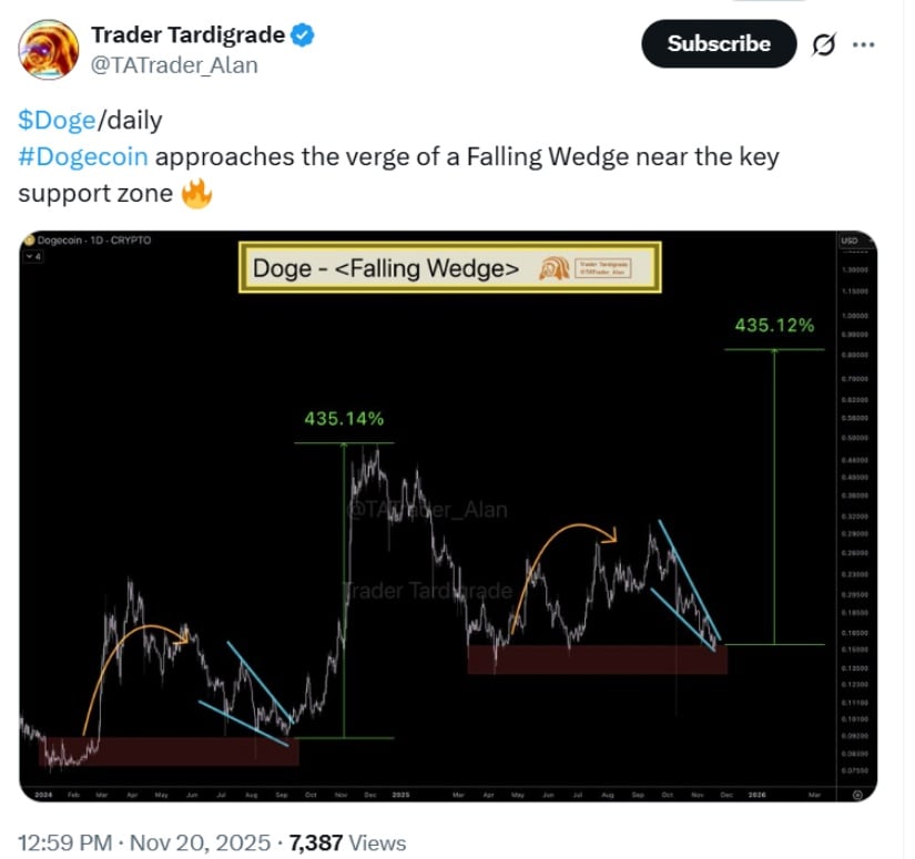 Die Tech-Zauberer plappern über ein fallendes Keilmuster, was angeblich bedeutet, dass DOGE an einem schlechten Tag wie ein Maultier seinen Kurs umkehren will. Im Klartext handelt es sich um einen Preisdruck, der möglicherweise sogar in die Höhe schnellen wird. Aber denken Sie daran, Muster sind wie Wettervorhersagen – nehmen Sie sie mit Vorsicht. 🧂