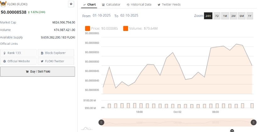 Und siehe! Die Marktdaten verkünden Flokis „Resilienz“: $ 0,00008538, ein Flackern von 1,82% im Dunkeln. Die Marktkapitalisierung, ein Mirage von 824,9 Millionen US-Dollar, schimmert neben 75 Millionen US-Dollar täglicher Handelsvolumen-A-Fluss der Liquidität, der nirgends fließt. Mit 9,65 Billionen Token zirkulierende Token wundert sich bei der Volatilität, die sich sowohl auf Rallyes als auch bei Routen kichert. 😏