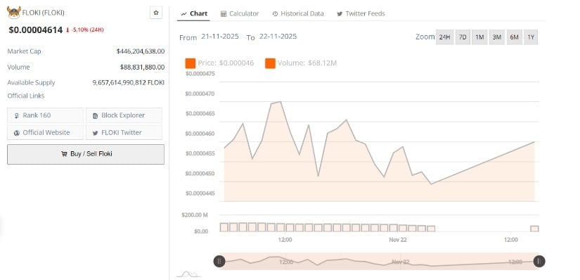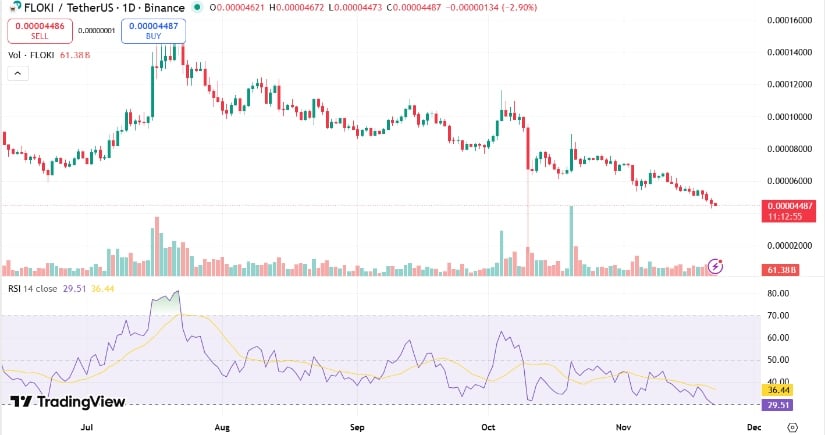 Das Allzeithoch von 0,000349 US-Dollar wirkt jetzt wie ein verlockendes Porträt früherer Pracht. Seit 2024 ähnelt der Chart von FLOKI einem Bärenmarktmanifest: niedrigere Höchststände, Verzweiflung und Ablehnung. Analysten zucken mit den Schultern – „Wenn es die Trendlinie nicht zurückerobern kann, warten 0,000040 bis 0,000030 US-Dollar. Ein Schnäppchen vielleicht für Masochisten.“ 😏
