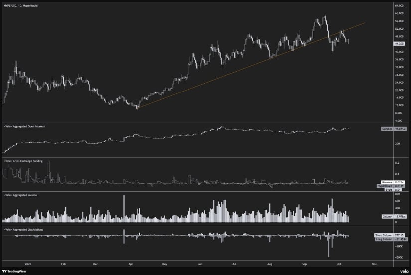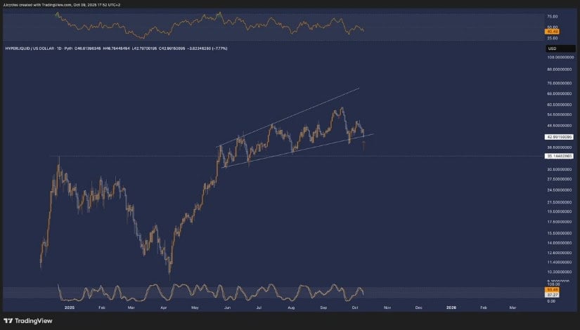Sehen Sie, wie der Preis von Hyperliquid am unteren Rand seines ansteigenden Kanals Pirouetten dreht, eine Bewegung so zart wie eine Primaballerina. Vergangene Performances deuten auf einen Aufschwung hin, doch der RSI, so der kühle Kritiker, deutet auf einen möglichen Neustart hin. Sollte dieses Niveau gehalten werden, könnten noch 48 bis 50 US-Dollar den Durchbruch schaffen. 🎭