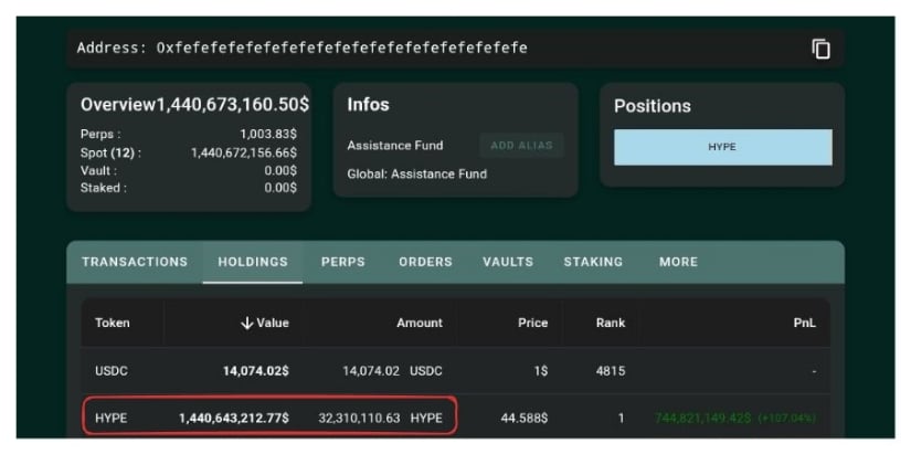 Treten Sie dem Hyperliquid Assistance Fund bei, einem Ritter in glänzender Rüstung, der 32,3 Millionen HYPE im Wert von 1,4 Milliarden US-Dollar hält. Ihre Marktkäufe signalisieren unerschütterliches Vertrauen, ein Sicherheitsnetz gegen den Abgrund. Die Entschlossenheit des Kernteams lässt darauf schließen, dass das Ökosystem trotz des Sturms stark bleibt. 🛡️