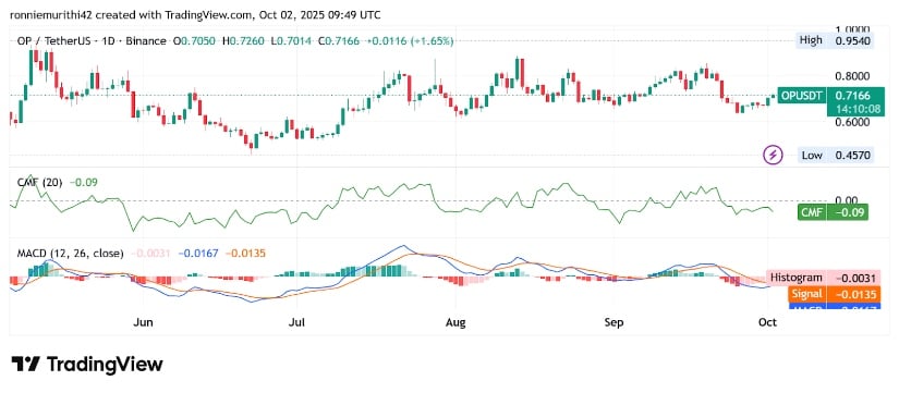 Sobald das einst dominante Optimismus-Token bis Ende September unter dem Gewicht des unerbittlichen Verkaufs nachlagert ist, steht sich wieder im Rampenlicht. Warum? Weil es eine linie-leitende, die die ach so kritische 0,72-$-Marke überschritt. Aber bevor jemand anfängt, Champagner zu entkunden, erinnern wir uns: Wir haben das schon einmal gesehen, oder? Ein kleiner Abpraller, ein Flacker der Hoffnung, und dann … na ja, lass uns nicht vor uns kommen.