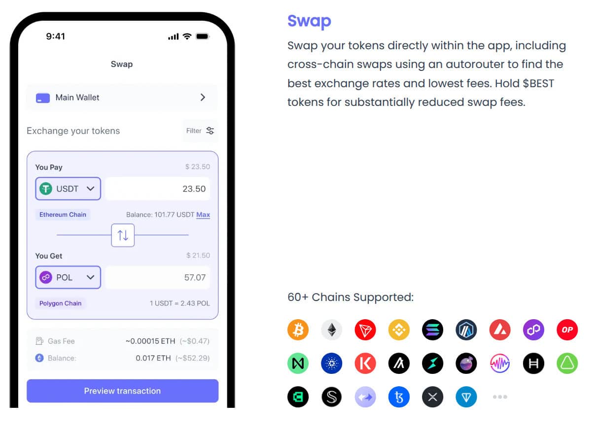 Key features include a built-in DEX aggregator, called ‚Best DEX,‘ which scans over 200 decentralized exchanges to ensure you get the best possible rates and lowest fees for their swaps. It also utilizes Multi-Party Computation (MPC) technology for enhanced security, eliminating the need for complex, easily lost seed phrases and providing passwordless recovery options. Because nothing says „enhanced security“ like trusting a system that forgets your password but remembers your soul.