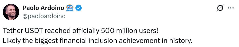 Der $USDT von Tether hat 500 Millionen Nutzer weltweit erreicht und sich als entscheidendes Instrument für die finanzielle Inklusion und als digitales Sparkonto in Ländern mit hoher Inflation etabliert.