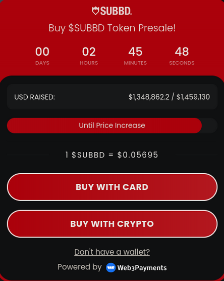 Nehmen Sie am $SUBBD-Vorverkauf auf der offiziellen Website teil. Der Preis beträgt 0,05695 £ – günstiger als ein anständiger Hut und potenziell weitaus profitabler.