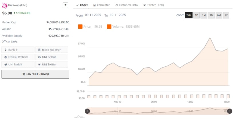 Und wissen Sie was? Der Münzmarkt hat seinen Schwung zurückgewonnen und ist in den letzten 24 Stunden um glorreiche 17,31 % auf 6,98 $ gestiegen – und hat damit fast die Oberliga erreicht! Das ist ein ziemliches Comeback aus den dunklen Tagen unter 6,50 $, als die Münze schmollte wie ein Welpe nach einem Bad.