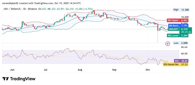 Uniswap bleibt das Lebenselixier seiner dezentralen Börse und fungiert gleichzeitig als Governance-Token für Protokoll-Upgrades und Treasury-Management. Aber im Moment gibt die technische Stimmung den Ton an, und Händler beäugen den Bereich von 6,00 bis 7,00 US-Dollar, als wäre es das letzte Stück Pizza. 🍕