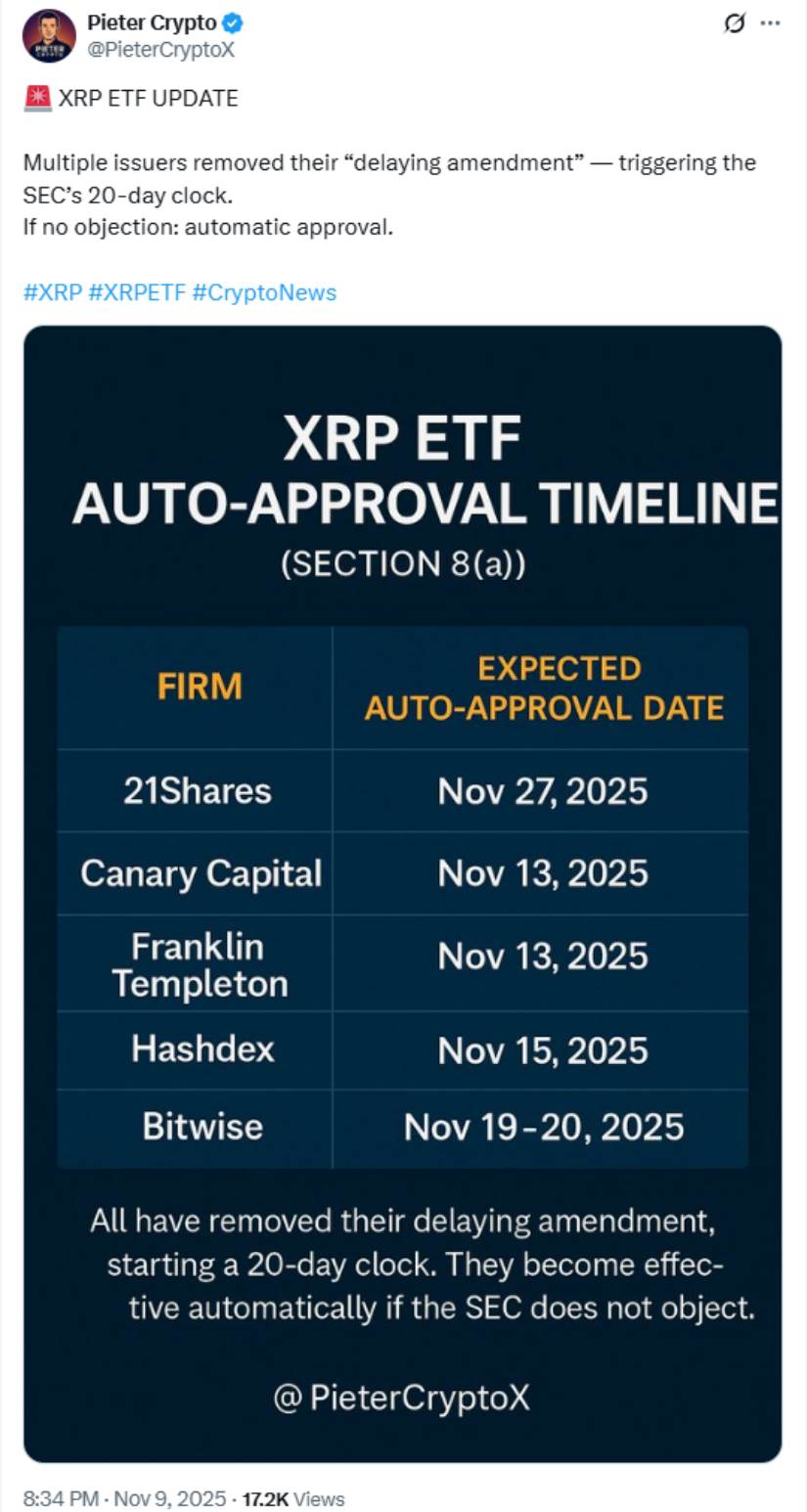 Anscheinend glauben die großen Macher, dass eine XRP-ETF-Zulassung in den USA die Eintrittskarte zum Star sein könnte. Mehrere Bewerber, darunter das charmante Unternehmen 21Shares, stehen mit Änderungsanträgen Schlange und lösen damit ein 20-tägiges Snooze-Fest der SEC aus. Ich drücke die Daumen, meine Lieben, denn ein grünes Licht könnte Ripple zur Schönheit des institutionellen Balls machen und die wohlhabende Klasse wie Motten ins Feuer locken.