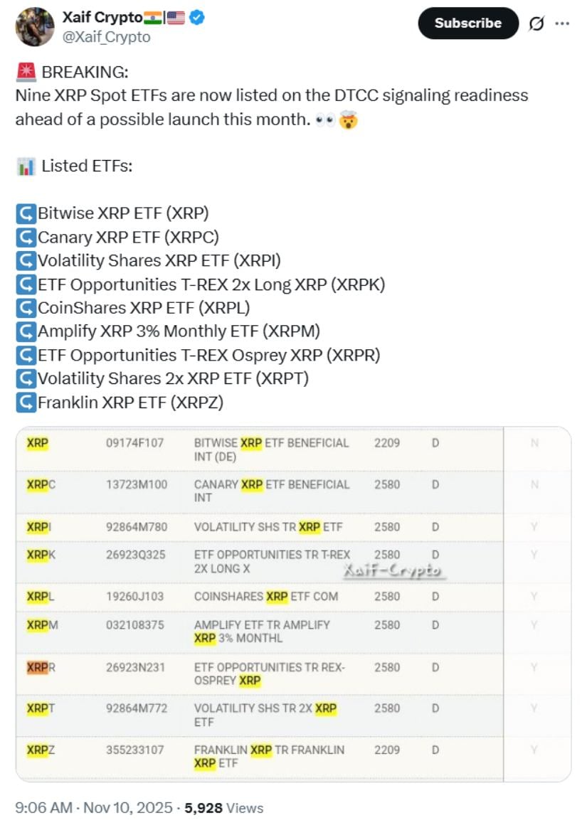 Eine weitere großartige Nachricht ist, dass sich die Infrastruktur-Verschwörung verdichtet, da sich Ripples XRP in Richtung Legitimität bewegt. Der Depository Trust & Die Clearing Corporation (ein Name, der wie ein schickes Londoner Anwesen klingt) listet jetzt einige XRP-Produkte auf – und zwar in Richtung dessen, was wir als „ernsthafte Dinge für Erwachsene“ wie Abwicklung und Verwahrung bezeichnen könnten.