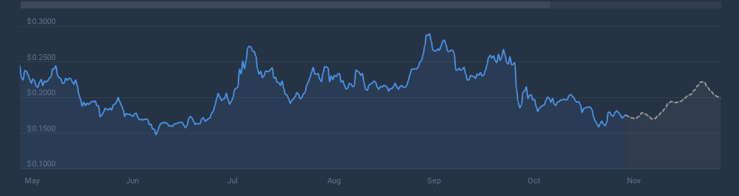 Die Zahlen besagen, dass es bis zum 12. Dezember könnte etwas steigen, auf 0,20 $. Aber jeder hat auch ein bisschen „Angst“. Eigentlich eine klassische Kombination. Und der Preis schwankt wie ein koffeinhaltiger Floh. 🐾